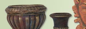 sobre peças de cerâmica, barro, madeira,